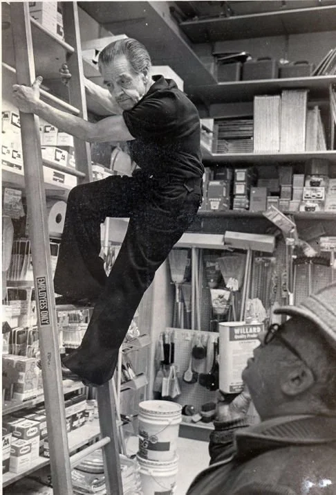 In October of 1971 Cliff's opened at 479 Castro Street. The building was erected in 1910 as The Castro Theater, it was remodeled into a retail store in the mid 1920's after the larger Castro Theater was built. This store was much larger than the previous one, and it seemed that it would be impossible to fill the place up. The merchandise was spread out to make the store look full, however, it was not long before the shelves started going higher up the walls. Ernie Asten, who had grown up at his grandfather's side, had learned many skills. It was his idea to add the rolling ladders. As new counters were needed he found it easier to build them himself than to find just what was needed to fill a particular spot. Product lines were added and expanded to meet the needs of people restoring their Victorians, and lines were also added to accommodate people putting their drag costumes together. So, you could get a plaster ceiling medallion, a feather boa, a toilet fill valve, a rhinestone tiara, and toys for the nieces and nephews all in one place!